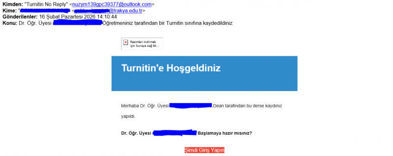 Bu e-postalar üniversitemiz tarafından gönderilmemiştir ve resmî Turnitin bildirimi değildir.